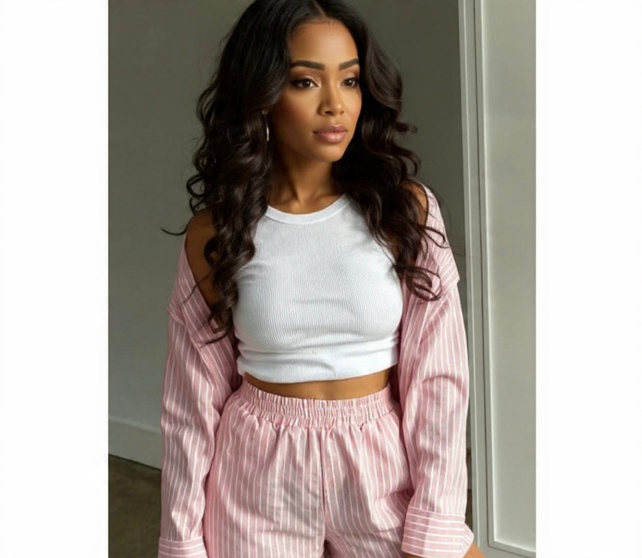 This two-piece striped print button-down loungewear set is the definition of comfy. Look good while feeling good.....set can be worn lounging around the house, running errands or simply just because you love the way it looks on. Embrace all-day, all-night comfort.
