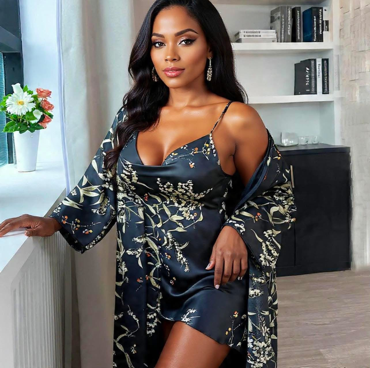 NEW! Luxe 2PC Floral Robe & Nightdress Set