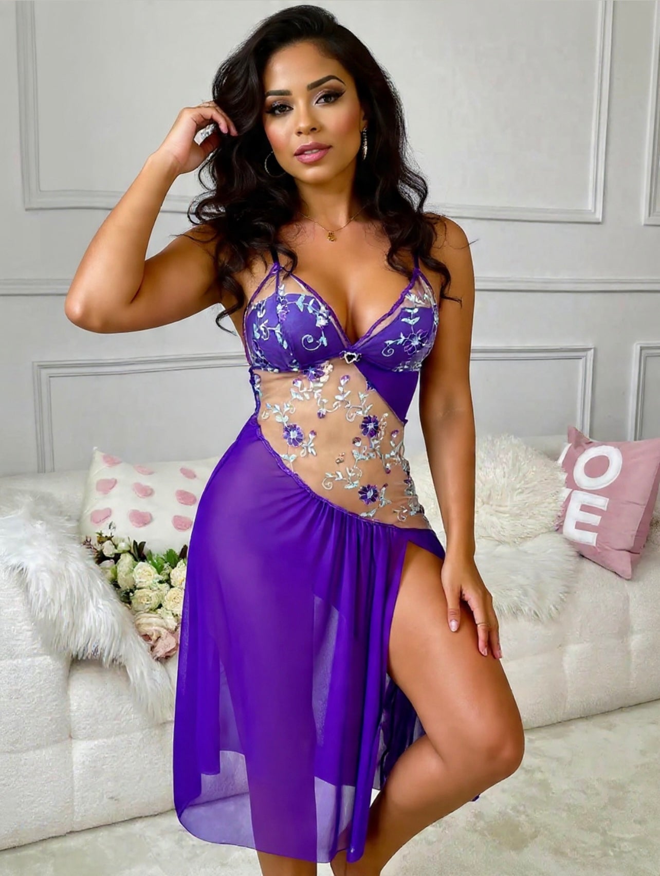 This elegant sleep dress is the perfect addition to your bedtime nightwear. Features luxurious material that will wrap you in a feeling of royalty. This sleep dress was made for those winding down moments after a long day and only the finest attire will do.